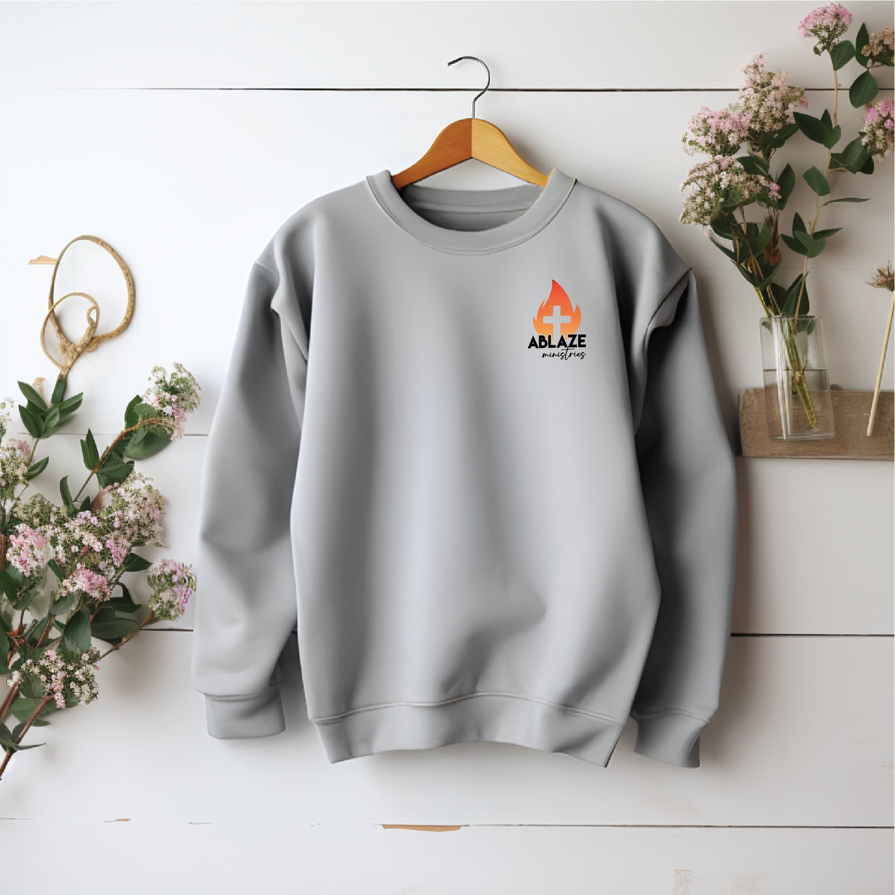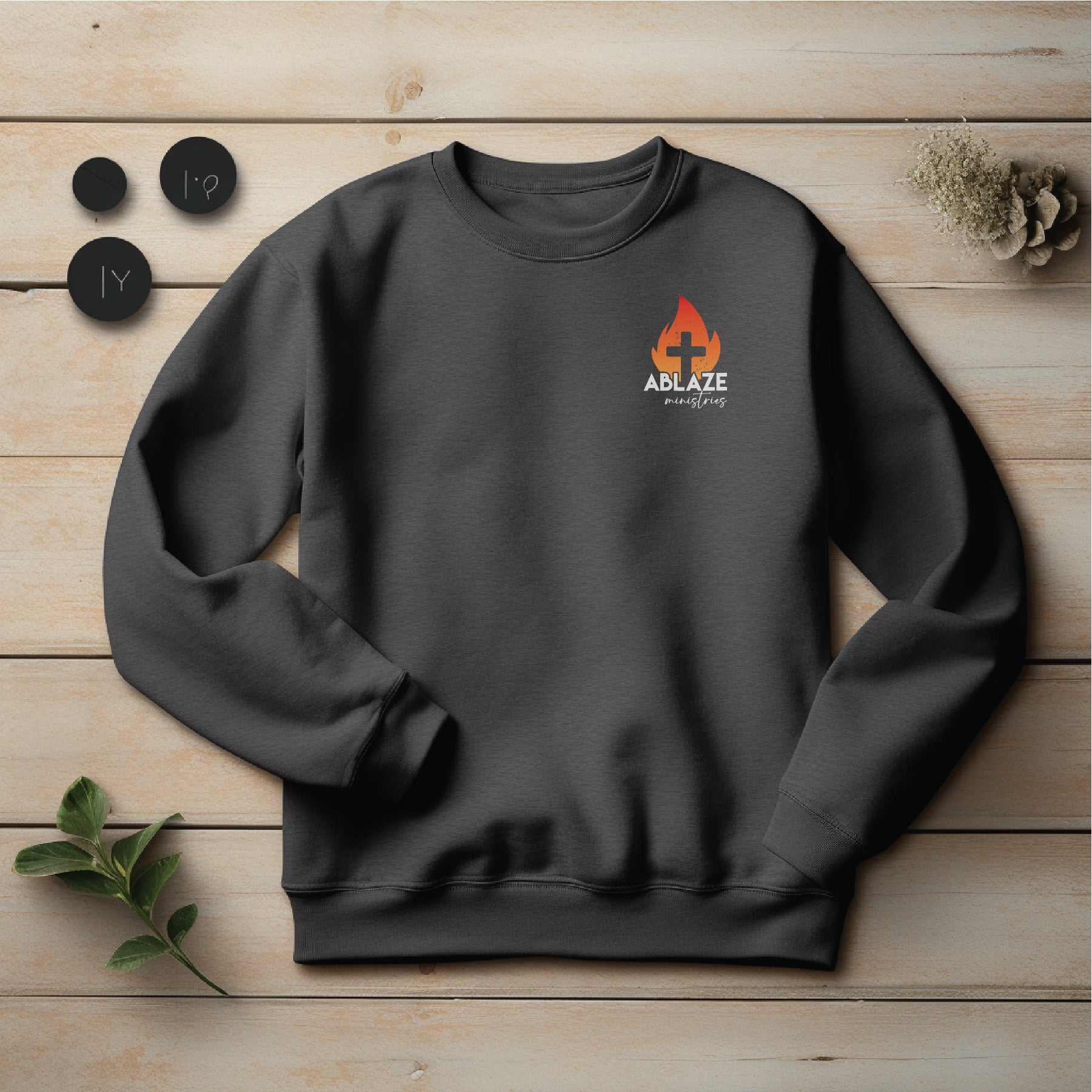 Show off the Ablaze Ministries Logo on the left chest with your pick of crewneck colors: Black, Sport Grey, Dark Heather Grey, or Maroon. Ships in just 1-2 weeks!
