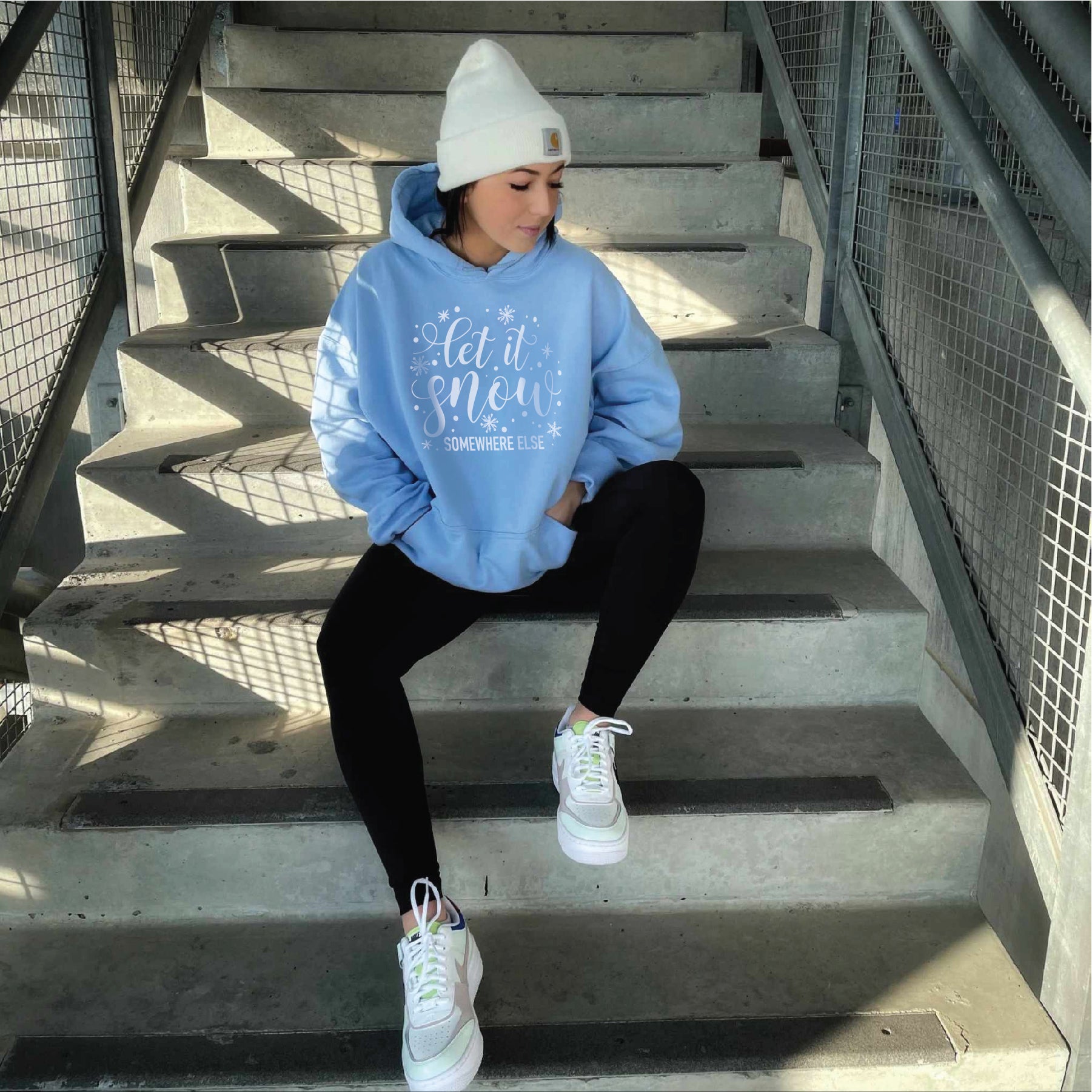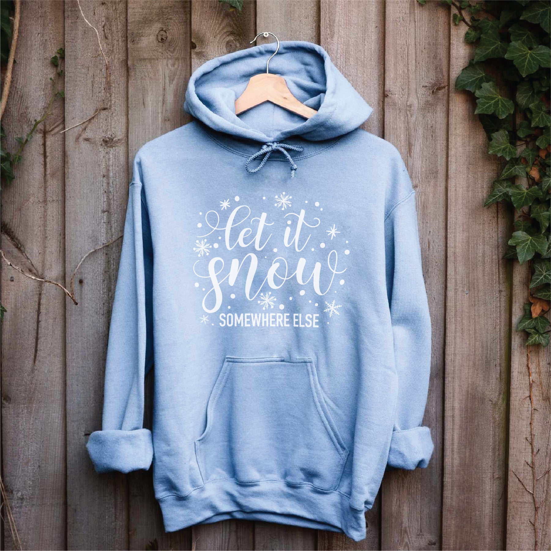 Wrap yourself in cozy comfort with our 'Let It Snow Somewhere Else' hoodie. Featuring a funny message and crafted from soft, warm materials, this hoodie is perfect for staying snug on chilly days. Embrace the winter vibes in style!