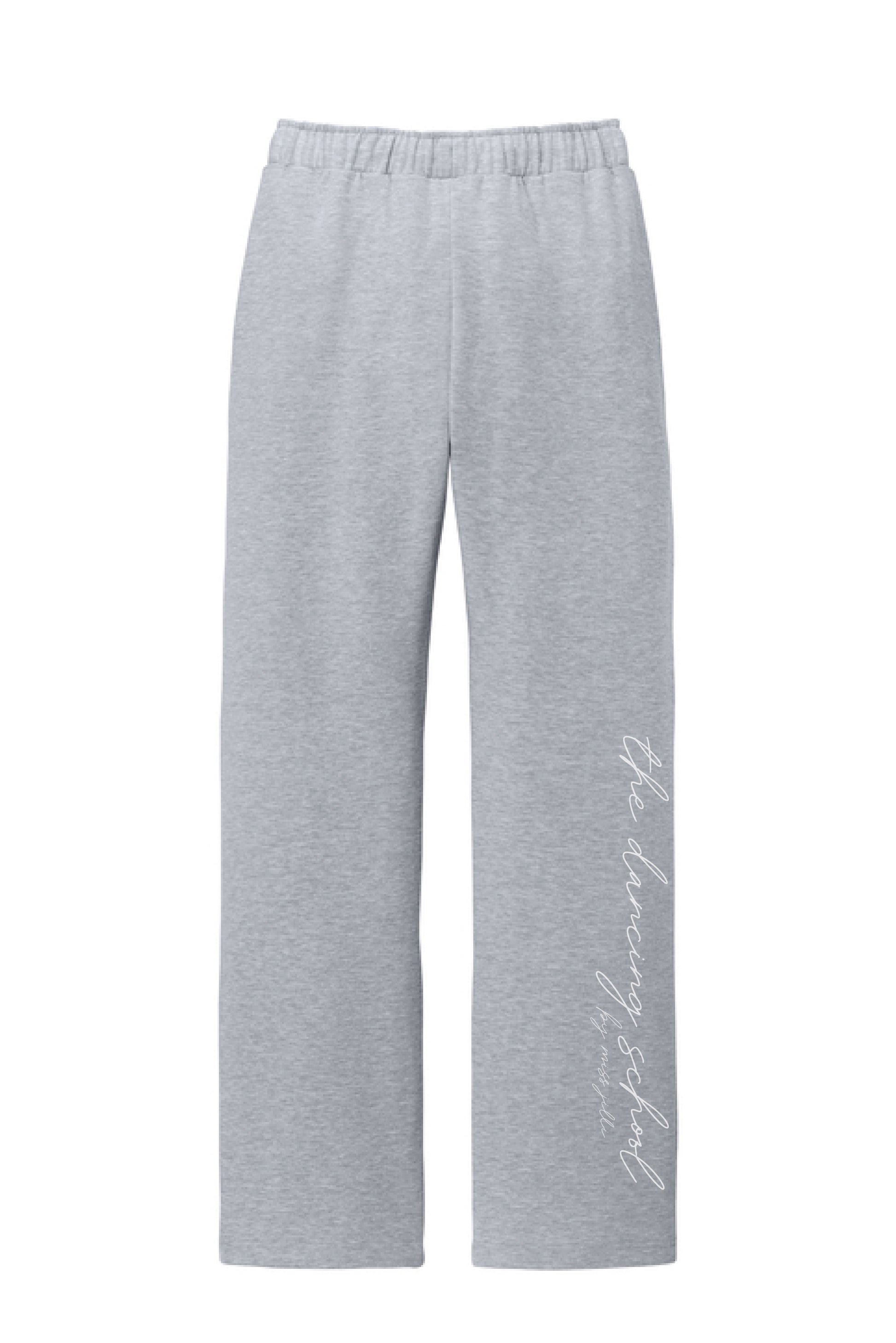 Step into comfort with these wide-leg sweatpants that bring effortless style to your everyday rotation. Rock the "The Dancing School" script logo at the ankle—choose between a classic white print or eye-catching white glitter finish in dark or light grey. The straight-leg silhouette hits all the trending notes, while the clever convertible waistband lets you wear it your way: standard fit or rolled for that personalized vibe. Crafted from premium 60/40 ring spun cotton/polyester blend with plush 3-end fleece, these pants deliver serious comfort without the compromise. Interior drawcords keep everything in place, and the finished waistband looks polished whether you're showing it off or keeping it tucked. Tear-away label means zero distractions. Made to order—allow 1-2 weeks for your perfect pair to arrive.